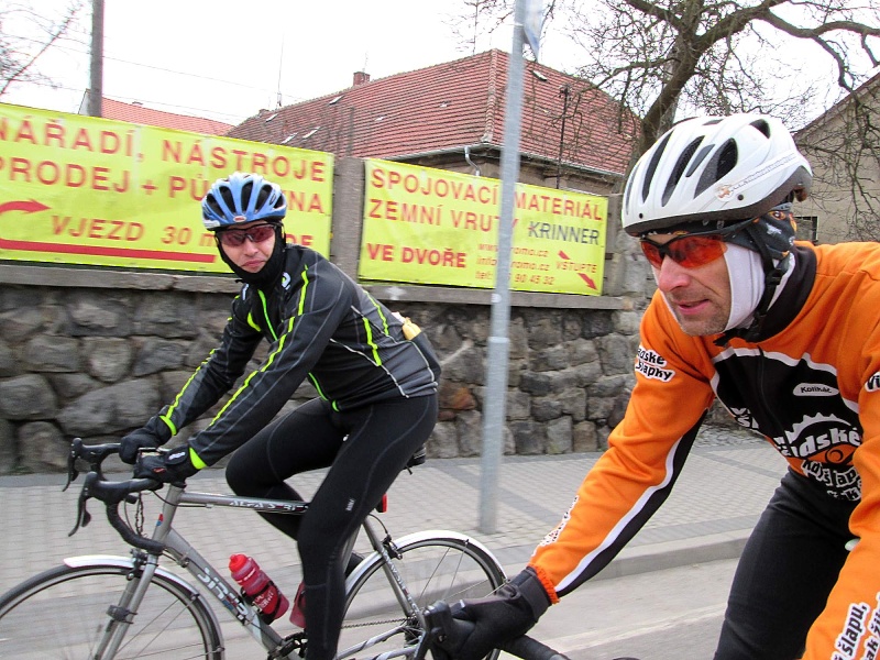 Z Ústí jedem podél Labe a pak „z ničeho nic“ odbočíme doprava a začíná kopec. Na začátku to ještě vypadalo lidsky, ale jak čas ubíhal, všichni mi začali odjíždět a sklon kopce přitvrzoval. Převod 39×26 je dobrý na najíždění jarních objemů v rovinách, ale do kopců se pro mě moc nehodí. Zvláště když formy málo a kil hodně. Usilovně točím nohama, překonám několik stojek a za chvíli vidím na vlastní oči kapličku, kterou znám jen z fotografií – Rytířov je dobyt! A já jsem zbit! Radostí celý bez sebe, že už to mám za sebou se postavím k ostatním na skupinové foto. Netušil jsem, jak hluboce se mýlím.
